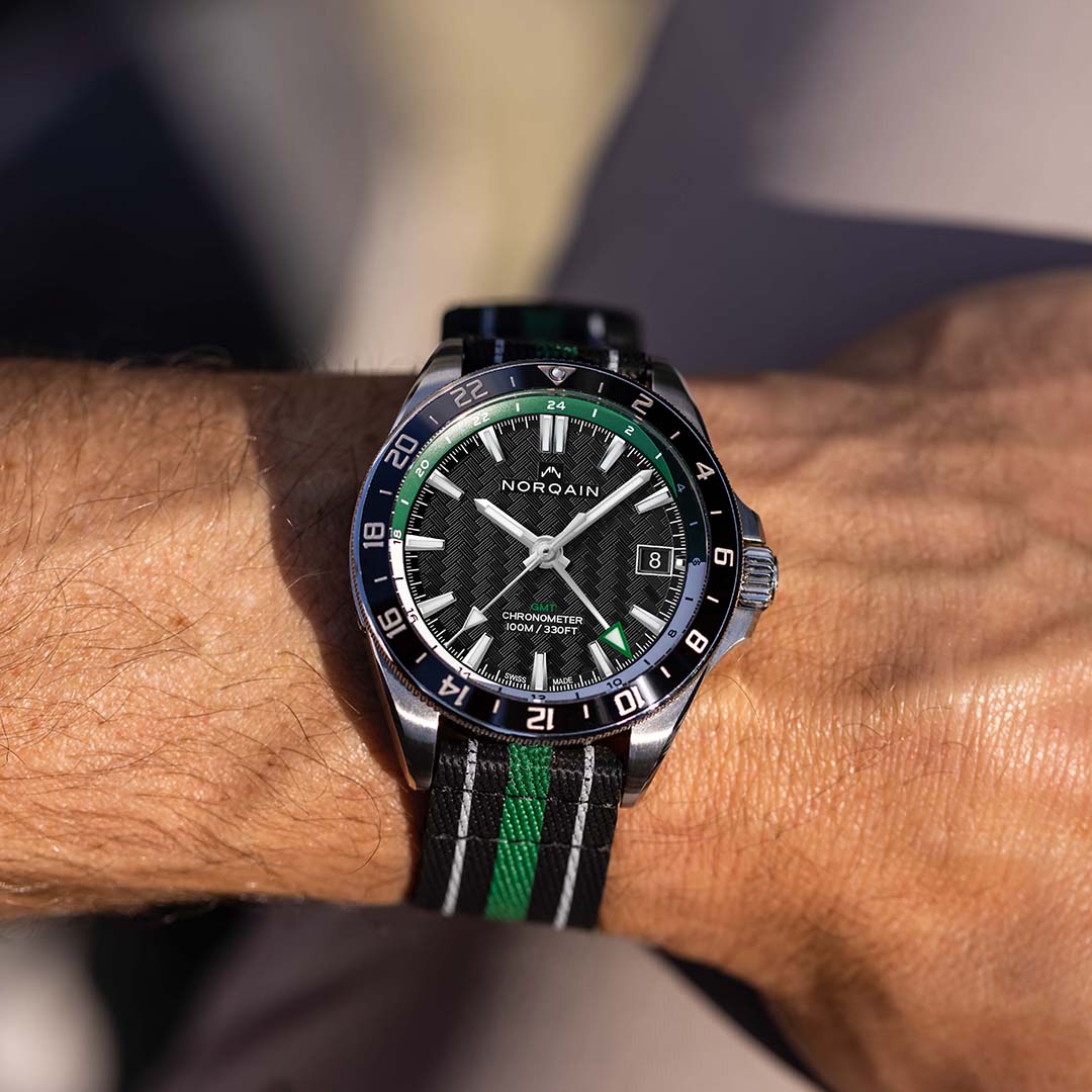Norqain is ready for any adventure. The brand's logo, symbolizing a mountain peak, reflects its adventurous spirit and deep connection to Swiss watchmaking tradition. Guided by a long-term vision, NORQAIN remains committed to its unique values and customer inspiration, aiming to bring Swiss-made timepieces to both young and young-at-heart, with the support of advisor Jean-Claude Biver.