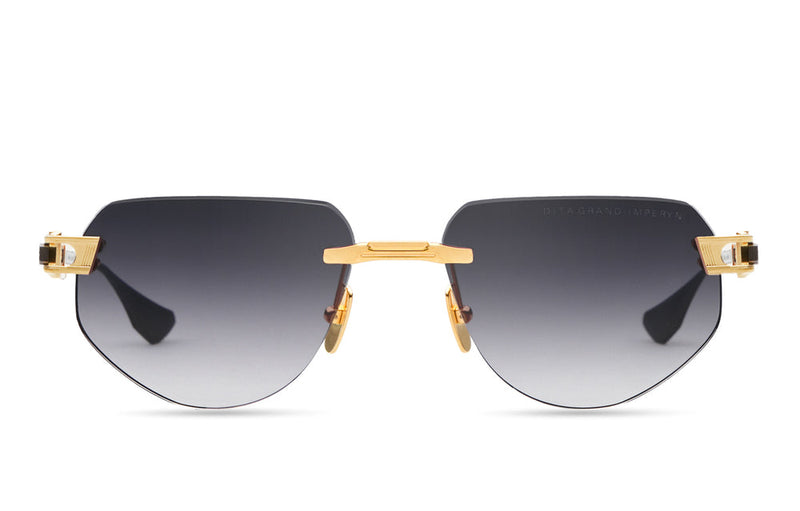 GRAND-IMPERYN exudes opulence with its rimless frame construction, skillfully crafted using a custom titanium 2-piece nose bridge. The design incorporates a striking 3-piece titanium hinge plate embellished with pressed line details and an elegant enamel inlay. DITA's innovative design approach is evident in the harmonious blend of colors across different variations of this frame: whether it be the Saturn Sunset Gradient lenses complimented by ruby enamel temple tips or Dark Green to Clear Gradient lenses complimented by emerald enamel temple tips.