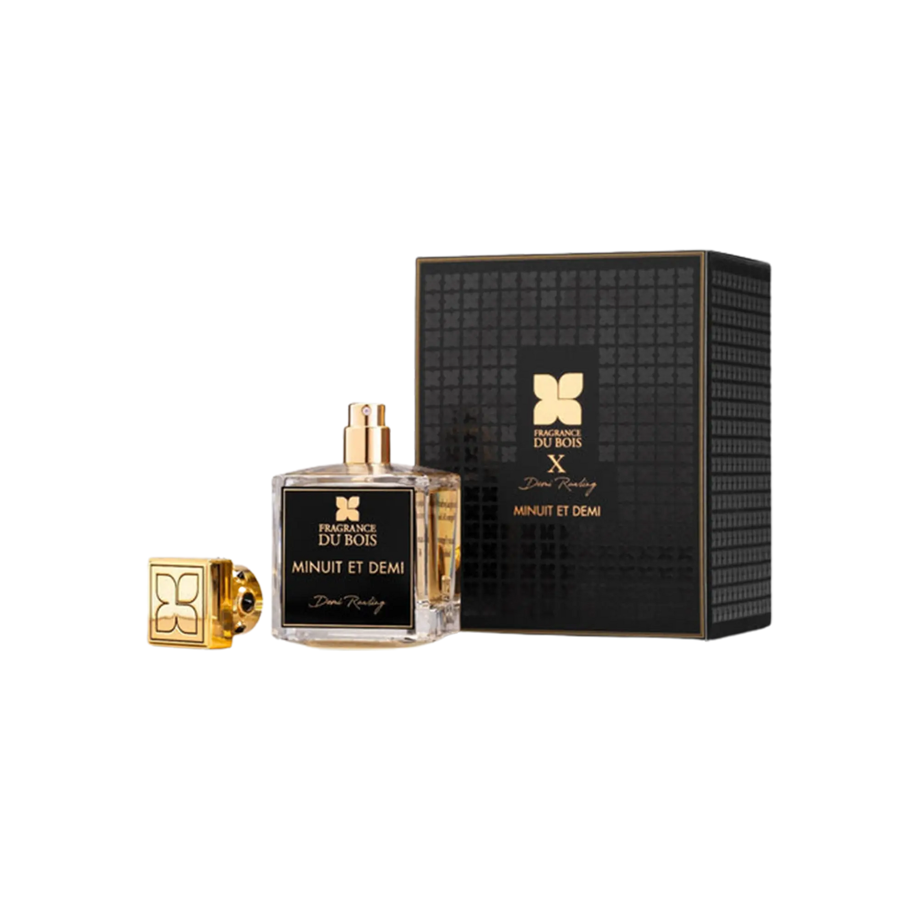 It's half past midnight. The distant promise of a new day lingers seductively. No words are required. Just the definitive scent of utter pleasure, Minuit et Demi. An intimate and sensual rich gourmand crafted to intoxicate the room. A collaboration of pure parfum passion, Demi Rawling and Fragrance Du Bois unite in an expert blend of extraordinary ingredients, delivering unfaltering strength and depth. Subtly warm spice notes dive into an addictive heart of coffee and caramel, enveloped in a bespoke compound of Bourbon de Laire by perfume legends, Symrise.