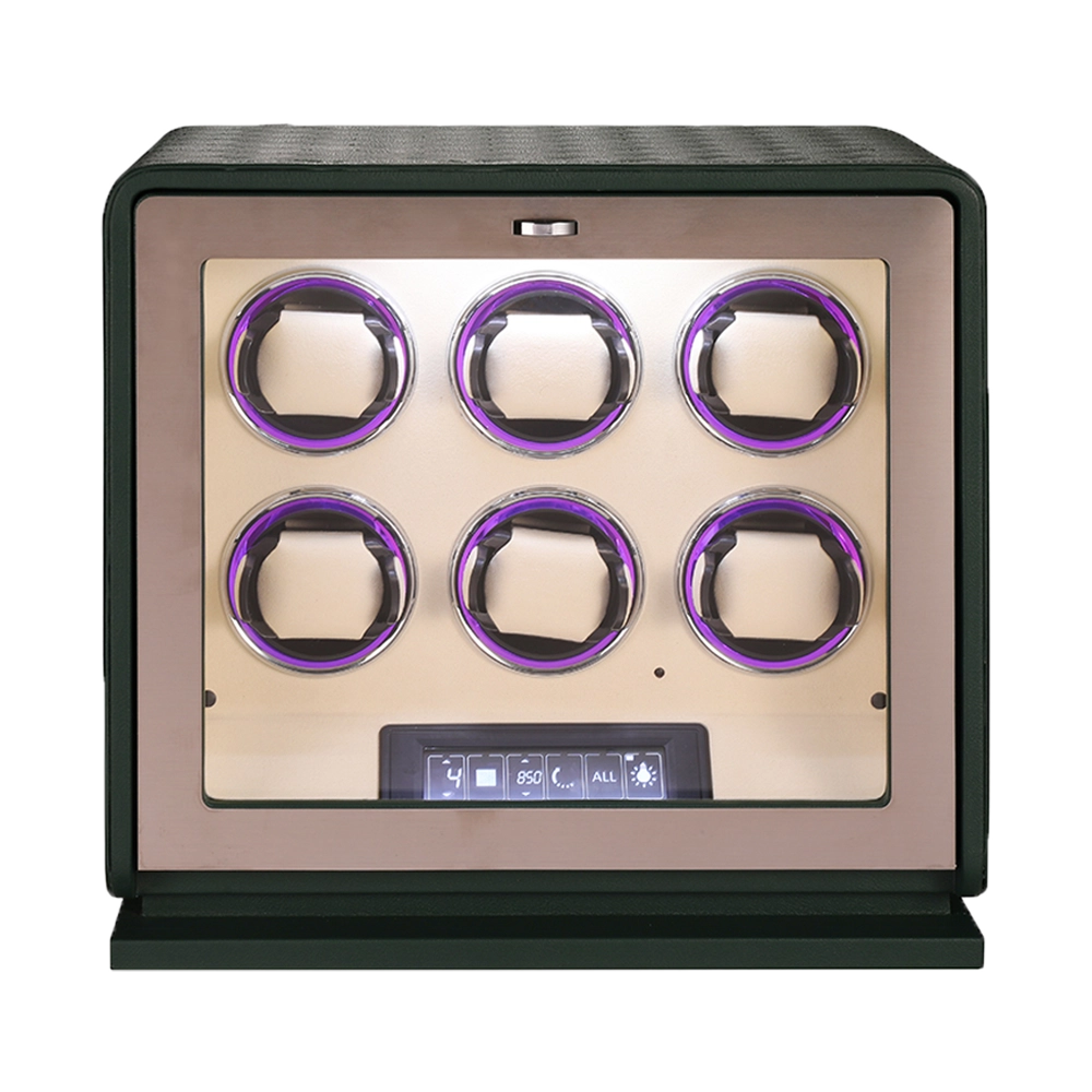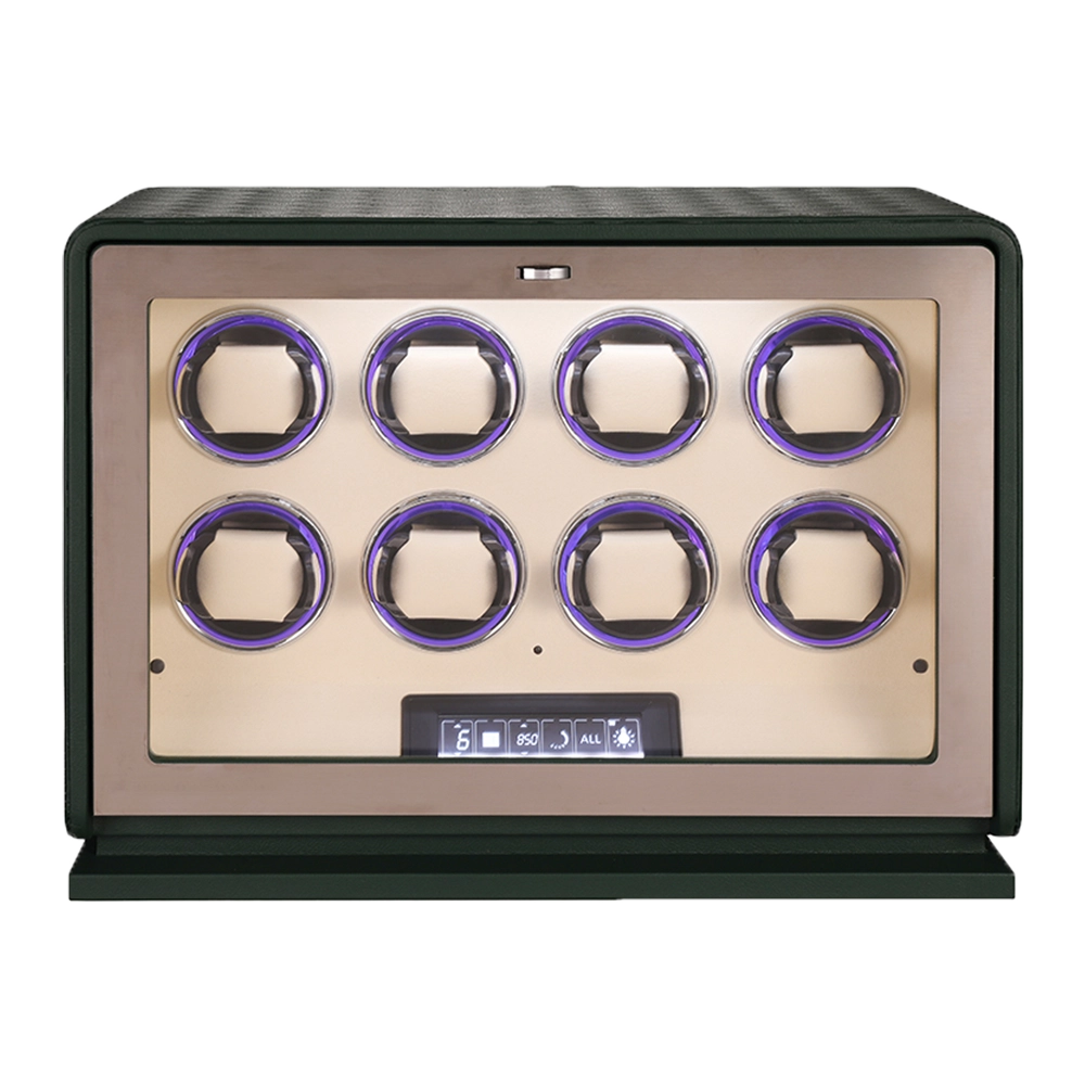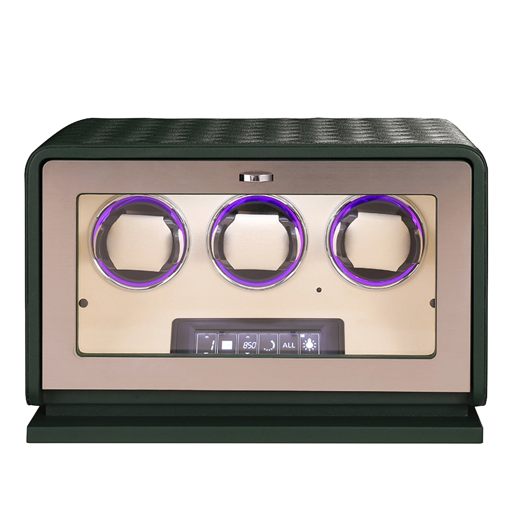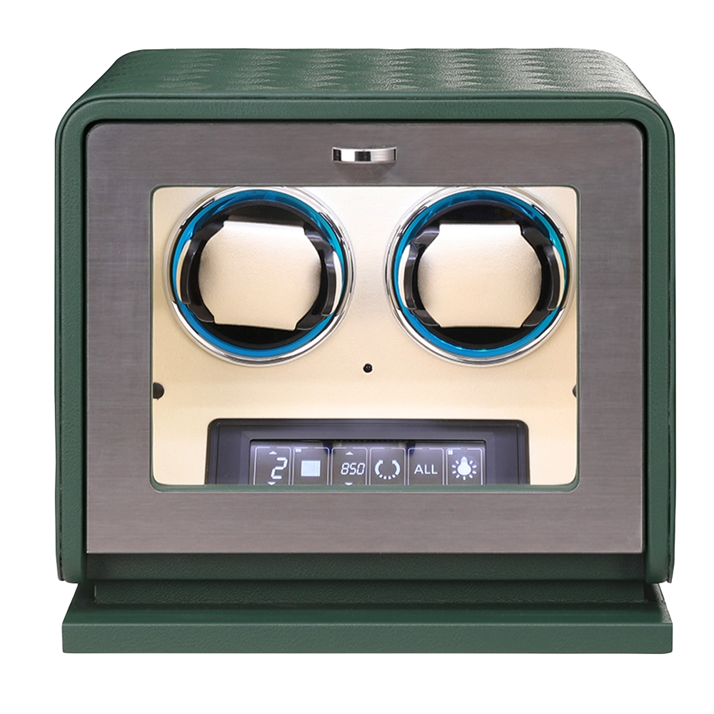 Grand Tourer Luxe Storage Watch Winder protects, stores, and elegantly display your prized timepieces with this premium watch winder, crafted for collectors who value precision, performance, and refined presentation. Finished in a sophisticated leather exterior with a microfiber velvet interior, it features a tempered glass display for secure and stylish showcasing.