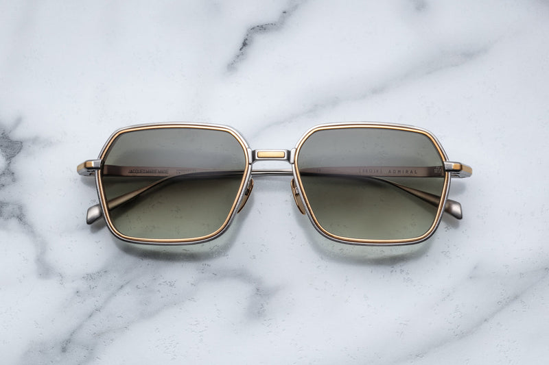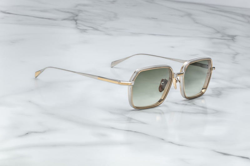 - Silver 100% beta titanium frame with silver titanium inserts and green lenses