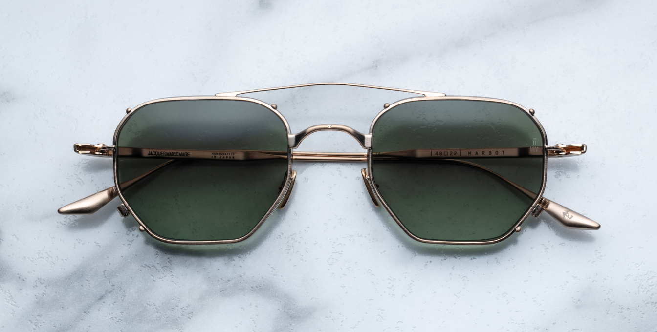 • Light gold 100% beta titanium frame with custom temple tips and demo lenses