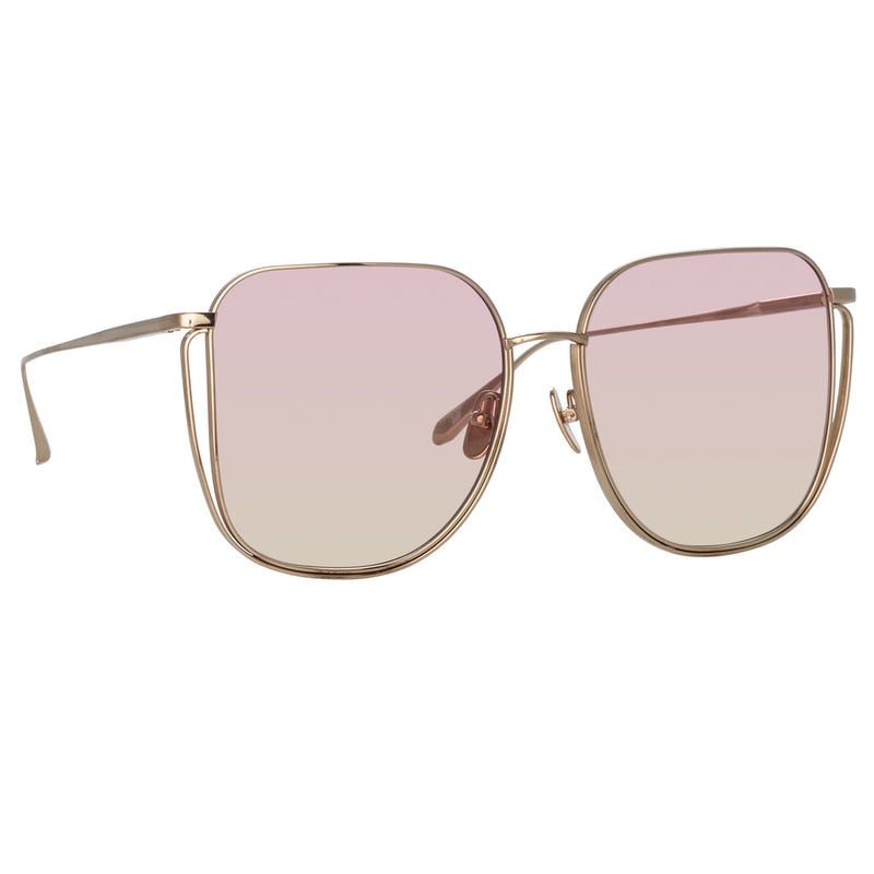 An experimentation of negative space allows the Camry to take on its unique form. Spun from pure Japanese titanium the 18 carat light gold plated sunglasses are fitted with lilac gradient ZEISS lenses for UV protection.