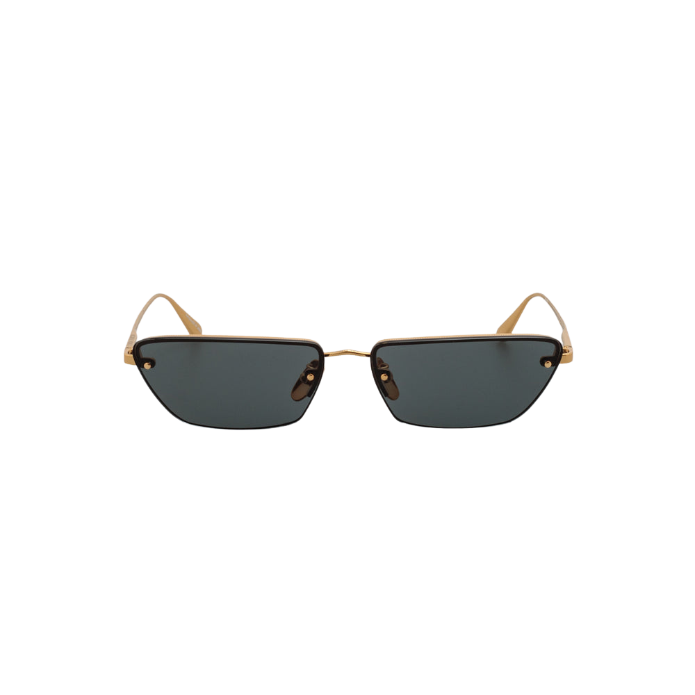 The classic cat-eye silhouette is redefined with a modern twist in the Cleo Cat Eye Sunglasses. Featuring luxurious yellow-gold titanium frames and paired with minimalist grey lenses, this design offers a refined yet effortless take on summer style. Perfectly blending boldness with a laid-back sophistication, the Cleo sunglasses are an essential accessory for a chic, understated summer look.