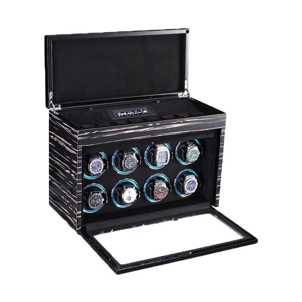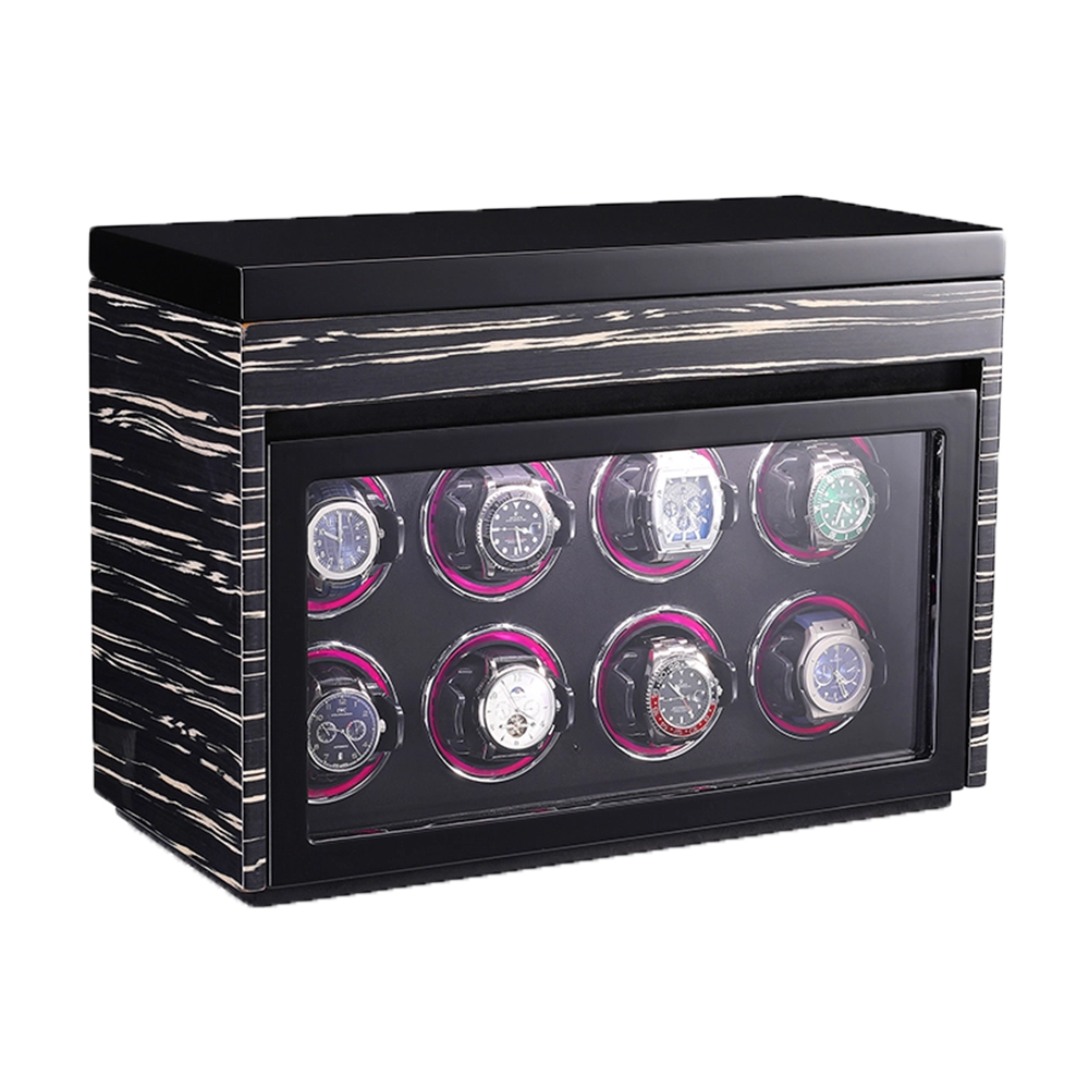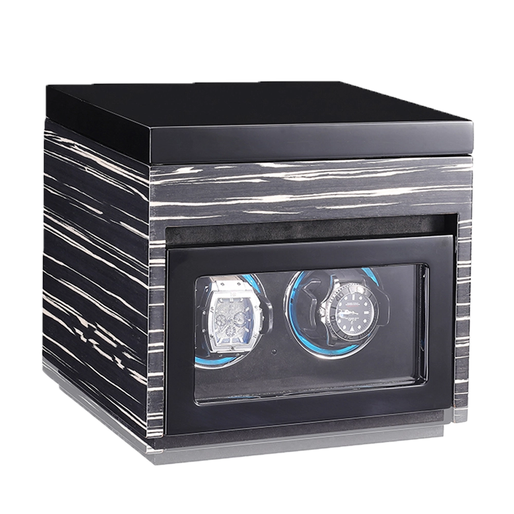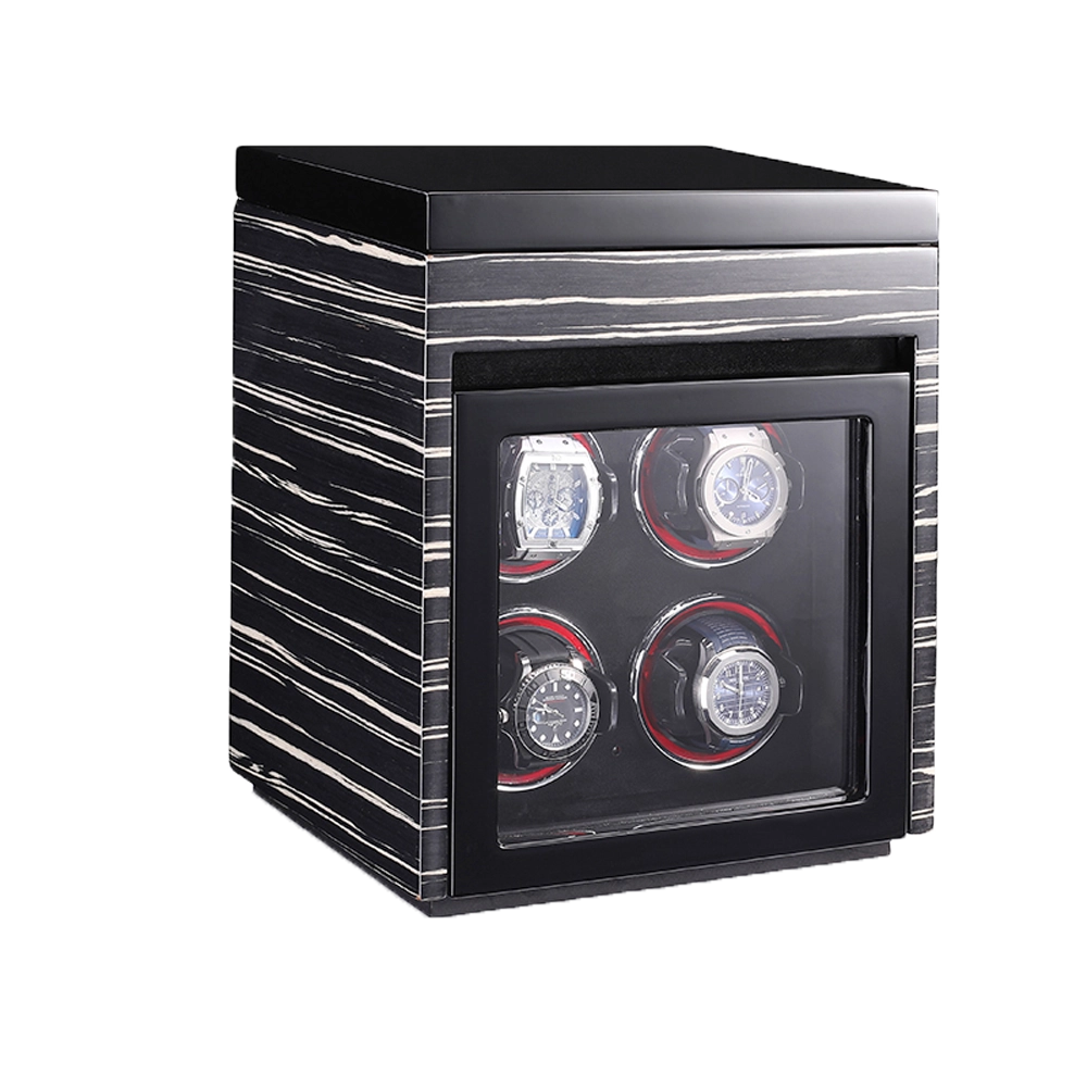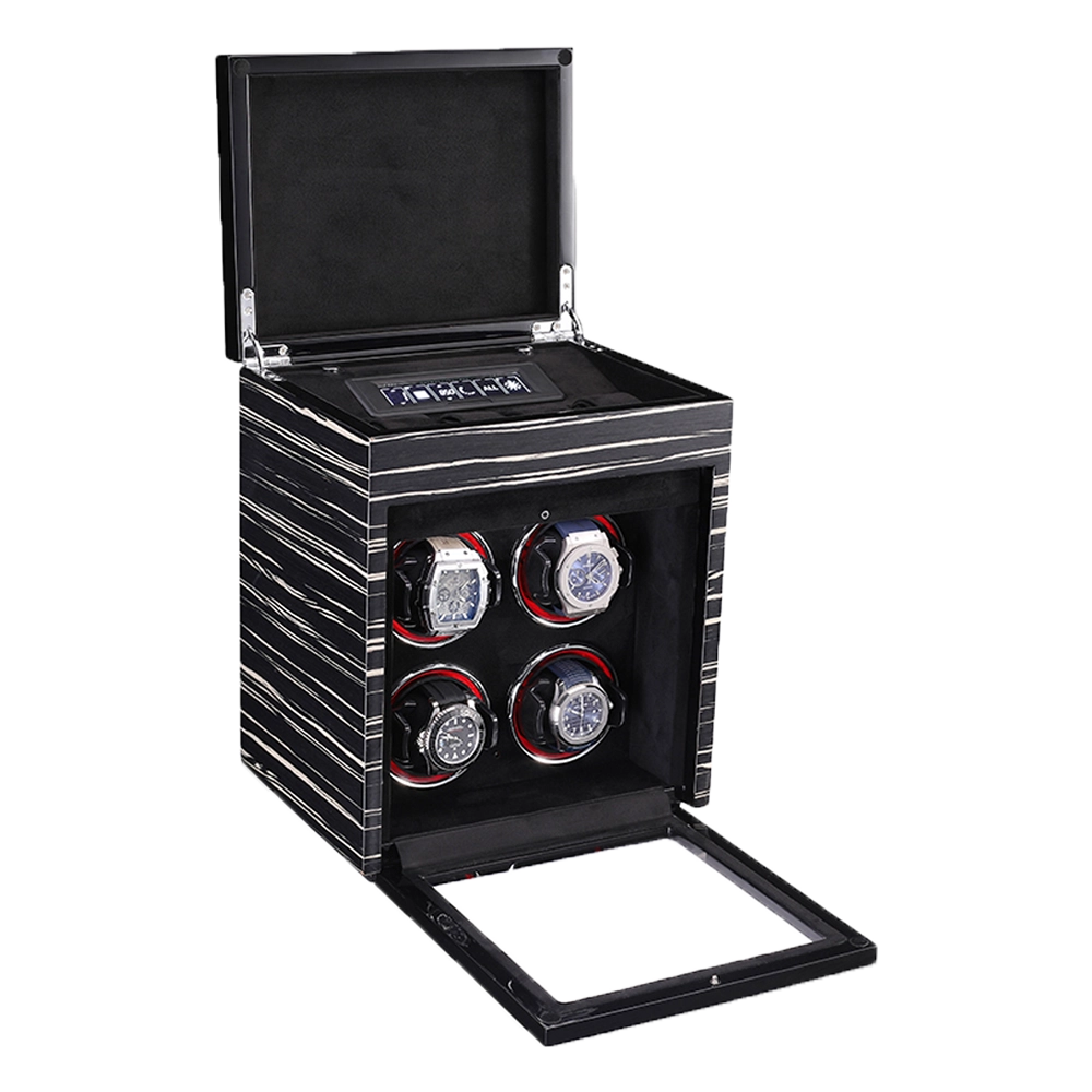 Premium Wooden Box Watch Winder – Protect, store, and elegantly display your luxury timepieces with this finely crafted watch winder box, designed for collectors who appreciate precision, security, and sophisticated presentation. Featuring a refined striped wooden exterior and a protective glass door, it delivers secure and stylish watch care.