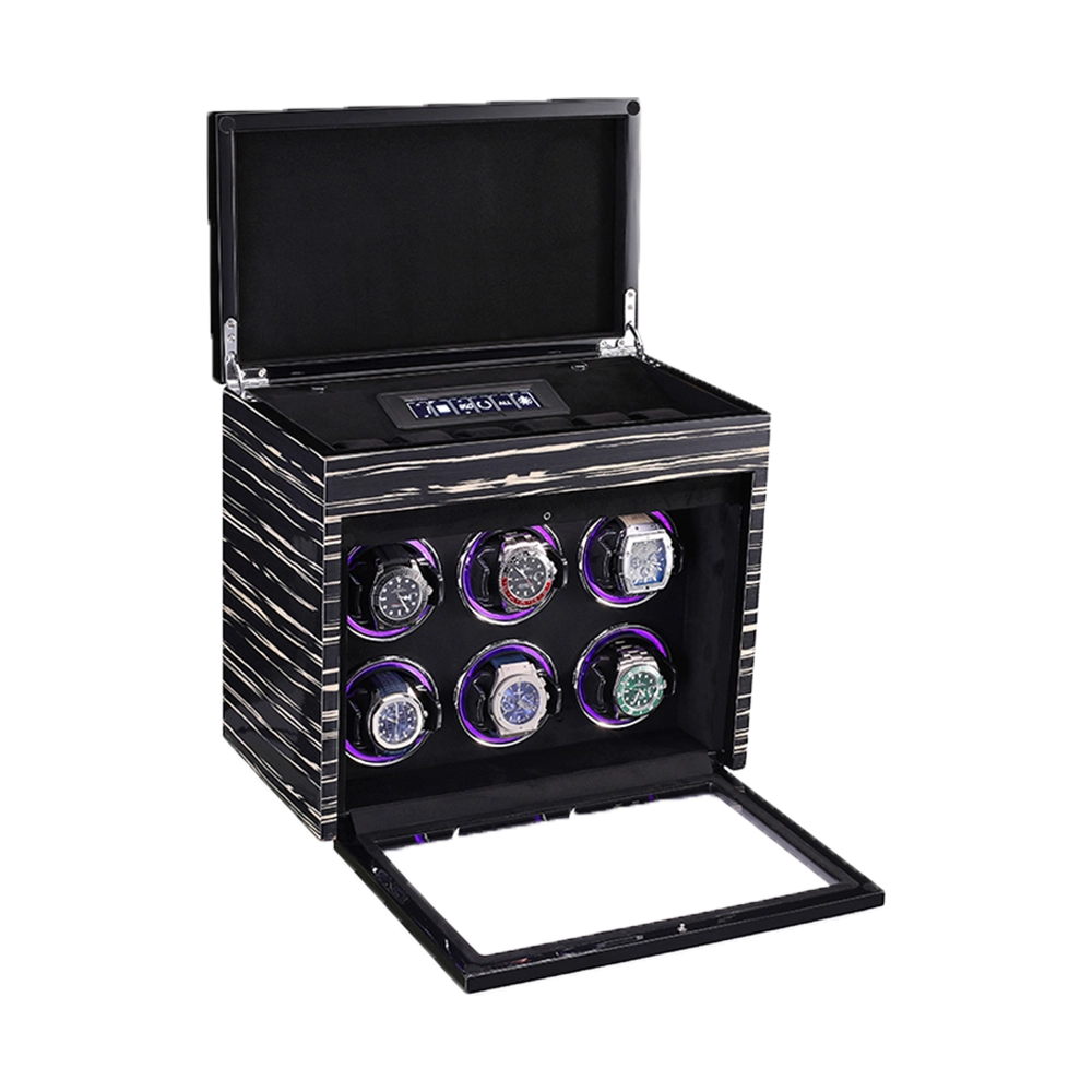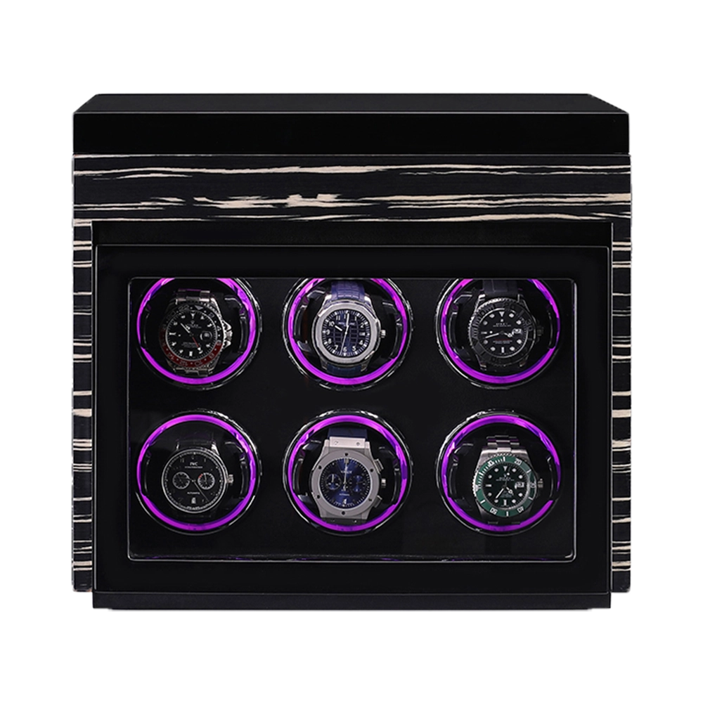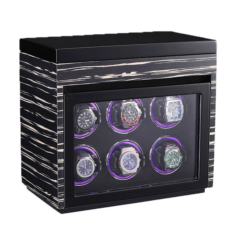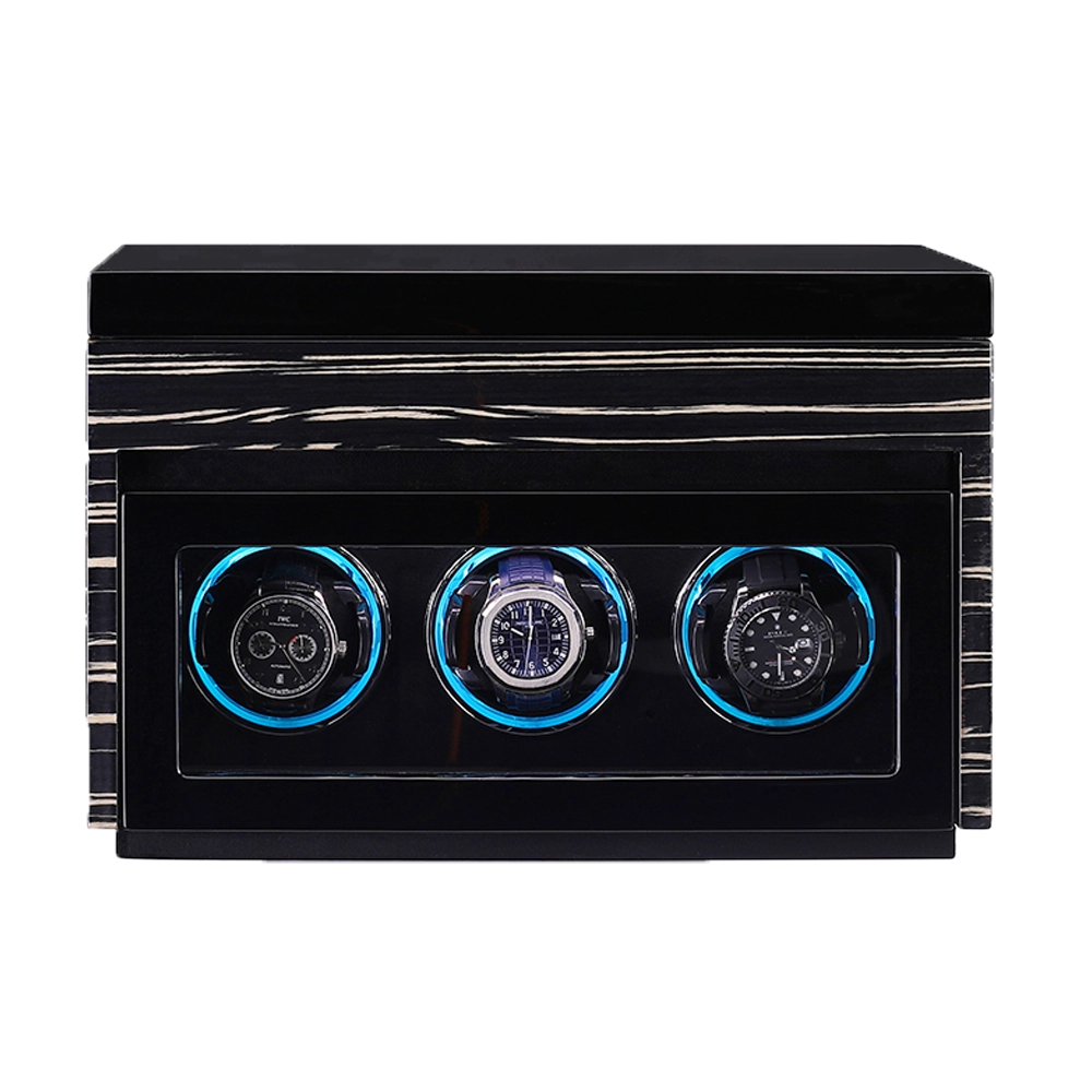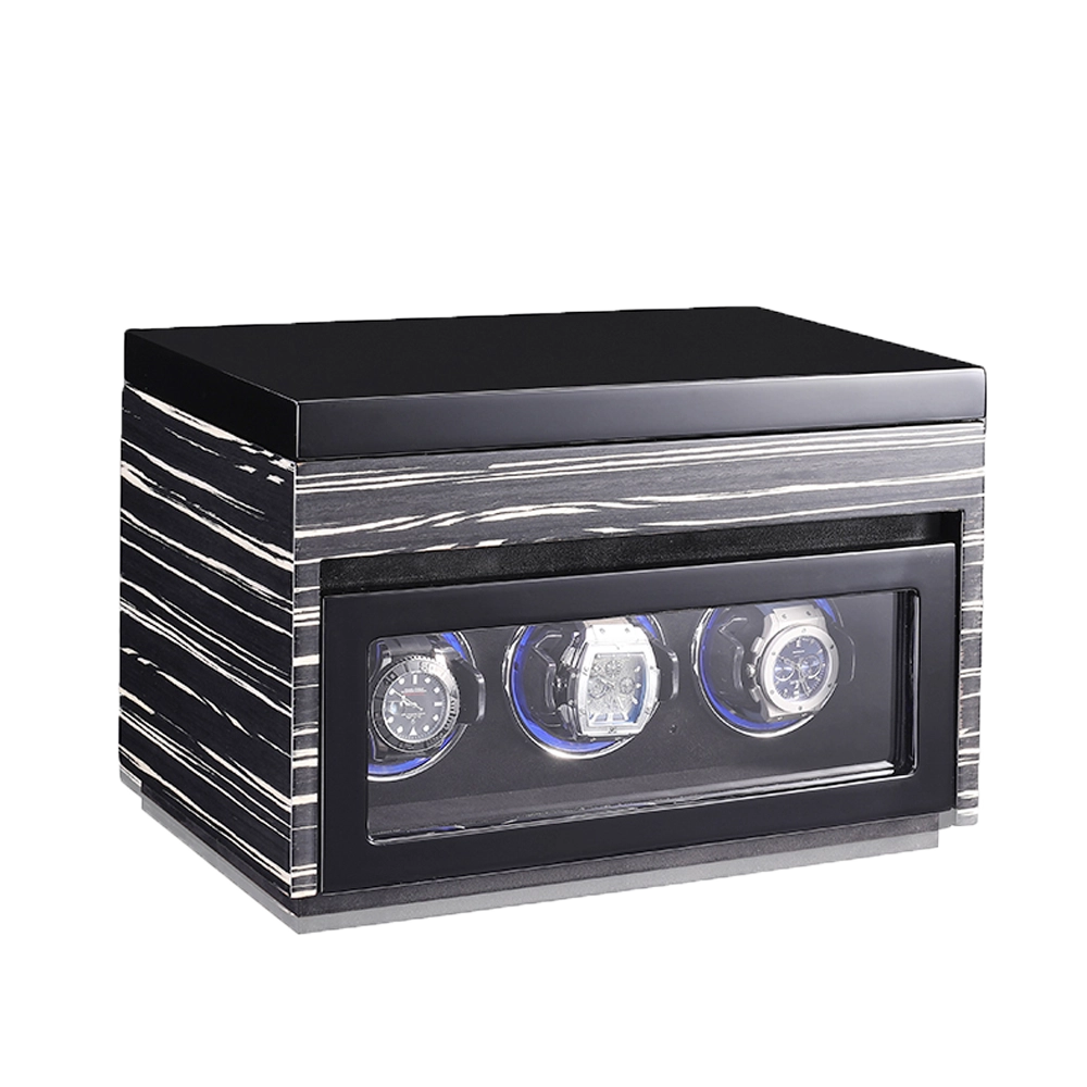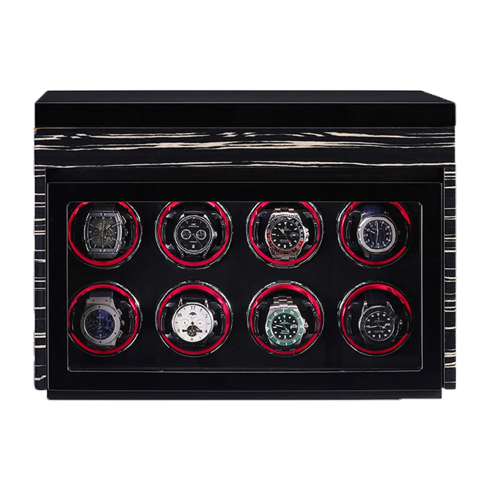 Premium Wooden Box Watch Winder – Protect, store, and elegantly display your luxury timepieces with this finely crafted watch winder box, designed for collectors who appreciate precision, security, and sophisticated presentation. Featuring a refined striped wooden exterior and a protective glass door, it delivers secure and stylish watch care.