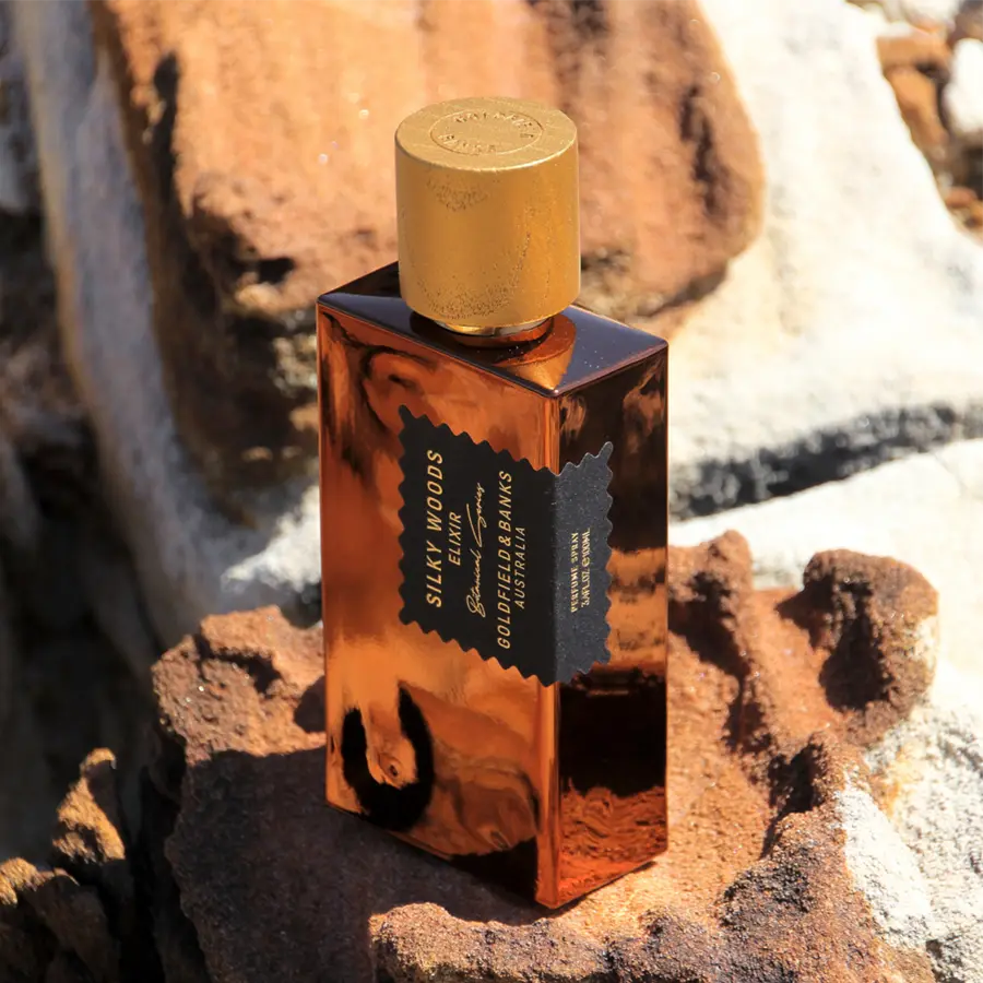 Silky Woods Elixir is an aromatic woody perfume inspired by the ancient Daintree Rainforest. Tropical Australian Agarwood blends with Fig, Saffron, Orris, Guaiac Wood, Vanilla and Oud Assafi for a dark and excessive creation.